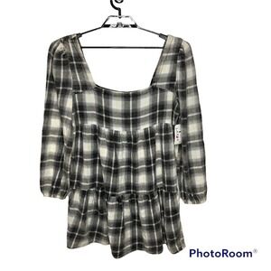 NWT BP Womens Marley Plaid Mini Dress Size Medium Irovy and Black Long Sleeve.
