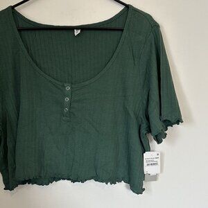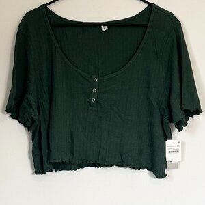 NWT BP by Nordstrom Dark Green Pointelle Rib Cropped Short Sleeved Henley - 3X