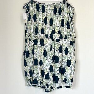 NWT BP by Nordstrom Strapless Knit Romper in Black-Green Honeycomb Floral - 1X