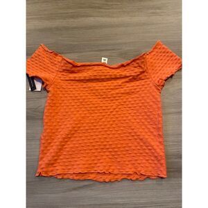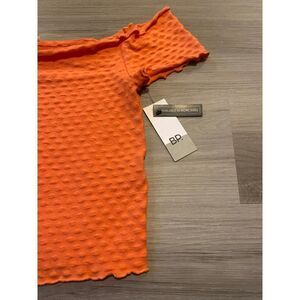 NWT BP, women's coral off the shoulder casual cropped textured top size small