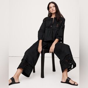 An ode to traditional broderie anglaise, these wide-leg pull-on pants have embroidered cutwork lace accents at the hem. Cut in our signature 100% cotton poplin. Style with the matching popover shirt or wear with an easy, oversized linen sweater.