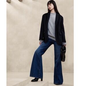 This BR oversized blazer is made with one of their favorite double-faced fabrics, one that is loved for its ability to balance tailoring with soft structure. This wool-blend fabric also allows us to leave the inside unlined--the better for layering through all seasons.
