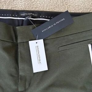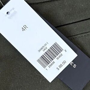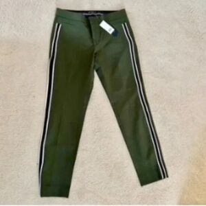 Olive green pants with black & white side stripe. New with tags, never worn. Size 4R (regular length).