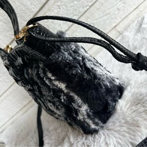 NWT | BRAHMIN Black Faith 3 in 1 Wichita Wristlet Crossbody Handbag Fur Bag