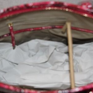 Featured in Crown of Hearts Melbourne, a lovable new ombre. Wear your heart on your sleeve with this romantic combination of radiant red and soft pink. The one-of-a kind heart-shaped python design is whimsical and oh-so sweet. This show-stopping collection is guaranteed to get you noticed. Made with genuine leather.
