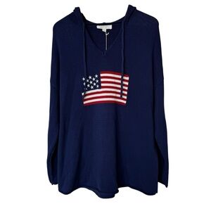 NWT! BRIT.NY Women's American Flag 1X Blue Pullover Sweater Hoodie Long Sleeve