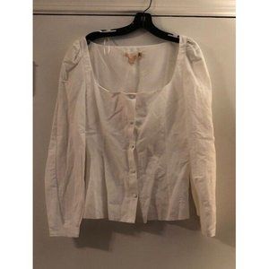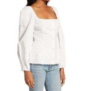 NWT BROCK COLLECTION THELMA LINEN & SILK BLEND PUFF SLEEVE SLIM FIT BLOUSE SZ 6