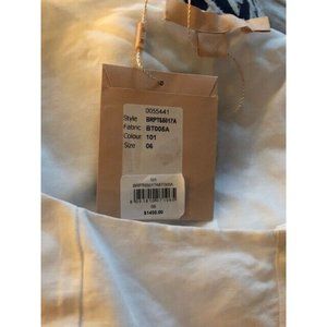 squared neckline and buttons along the front opening. Five button front close. Raw hems. New with tags and currently in stores now. Current season item. Originally retails for $1450. US size 6.