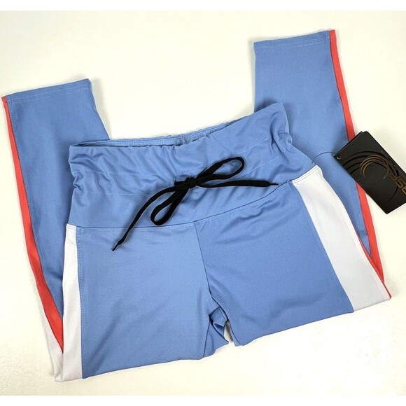 NWT BSP Better Sports Performance Crop Leggings Breathable Blue/White/Orange Lge