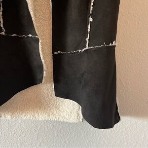 Brand new with tags, this B-Sharp faux suede and sherpa vest (size S) is a cozy-chic layer for cooler weather. The black faux suede exterior contrasts perfectly with the soft cream sherpa lining, giving it both warmth and style. Designed with an open front and rustic trim, it's easy to throw on over sweaters, flannels, or long sleeves. Perfect for fall walks, casual brunch dates, or layering through the winter, this vest adds texture and comfort to any outfit. A versatile piece that's both practical and stylish for everyday wear.