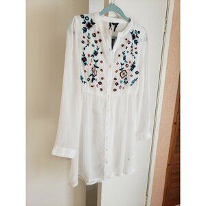 NWT BUFFALO BY DAVID BITTON EMBROIDERED WHITE BLOUSE SIZE M