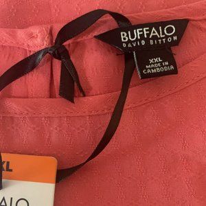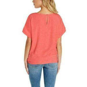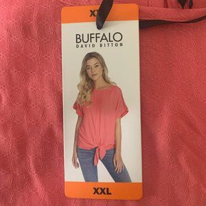 NWT (NEW WITH TAGS) BUFFALO DAVID BITTON CORAL SHORT SLEEVE LATTICE SHOULDER KEYHOLE BACK TIE TOP SIZE PLUS XXL.