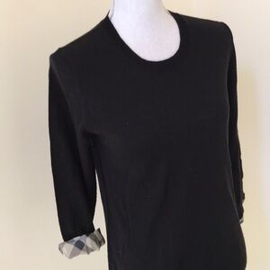 New! BURBERRY size medium black scoop neck merino wool sweater with pleated cuff which can be folded if needed.