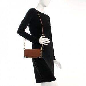 AUTHENTIC BURBERRY HOUSE CHECK DERBY LEATHER CANVAS HENLEY CROSSBODY BAG CLUTCH