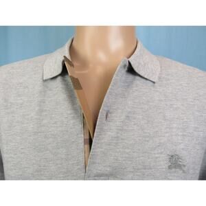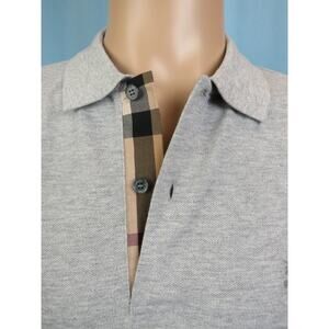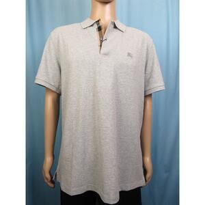 NWT BURBERRY OXFORD PALE GRAY COTTON CHECK LOGO SHORT SLEEVE POLO SHIRT S