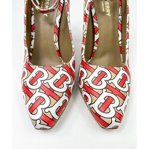 NWT BURBERRY Runway Red & Beige TB Monogram Logomania Ankle Strap Pumps …