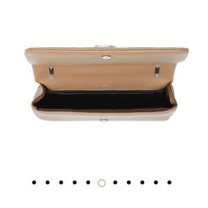 Fastened via magnetic snap-button. Features brand's logo in metal on the front, chain and leather shoulder strap, silver-tone metal fittings and interior with 1 compartment and 1 small slip pocket inside.
