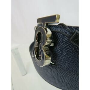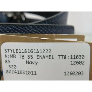 NWT BURBERRY TB 35 GRAIN NAVY BLUE LEATHER ENAMEL BUCKLE LOGO BELT 85/ 34 ITALY