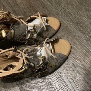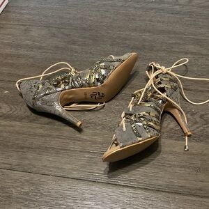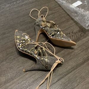 NWT BURJU Vaneno Open Toe Lace Up Stiletto Heeled Sandals size 10.5