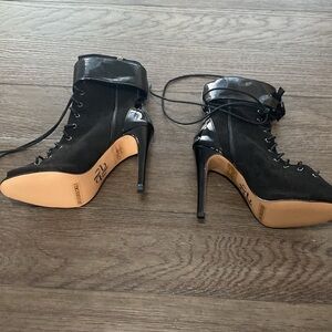 NWT BURJU Under The Influence Open Toe Lace Up Buckle Ankle Boots | Black | Size5