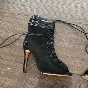 NWT BURJU Under The Influence Open Toe Lace Up Buckle Ankle Boots | Blac…