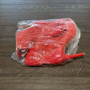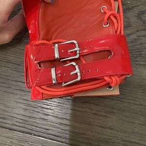NWT BURJU Under The Influence Open Toe Lace Up Buckle Ankle Boots | Red