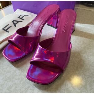 NWT BY FAR Romy Laq Square Fuschia Iridescent LAC Mules Sandals Women's 39/8.5