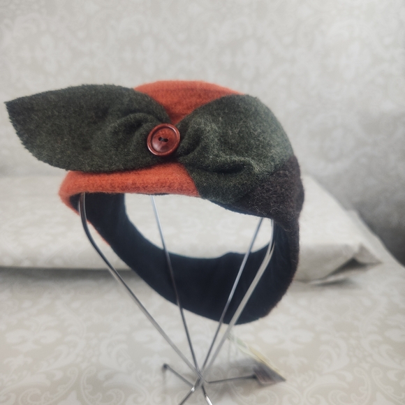 NWT Baabaazuzu Green Upcycled Boiled Wool Headband with Orange/ Brown