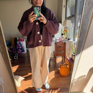 NWT Babaa No22 Cotton Cardigan in Black Cherry - Rich Brown Red