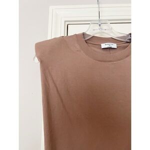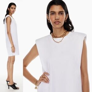 NWT Babaton Aritzia Shoulder Pad Cotton Mini Dress Clay