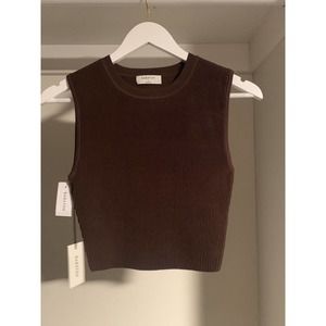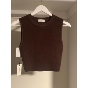 NWT Babaton Cropped Tank Top Women S/P Brown Knit Crew-Neck Sleeveless Pullover