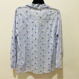 NWT Baby Blue Button Up Blouse with Floral Embroidery and Swiss Dots in Women's Size Medium