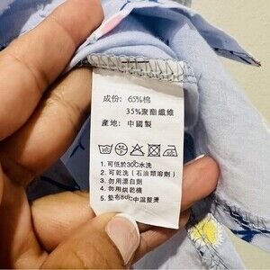 Lightweight cotton blend. Chest pocket. Embroidered pink and yellow flowers with all over swiss dots. No size tag please see measurements.