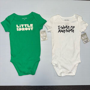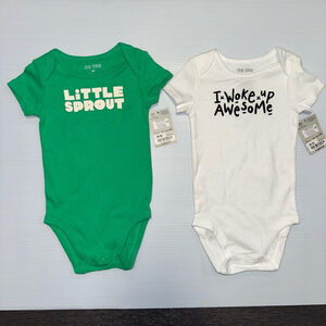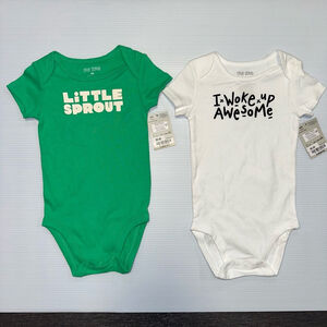 NWT Baby Boy okie dokie Bodysuit 9M Green & White Lot of 2. New