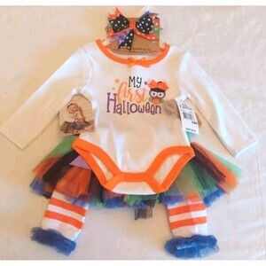 NWT Baby Essentials 4 Pc Fall Halloween Set: Skirt Tutu Bow Top Leg warmers 3 Mo