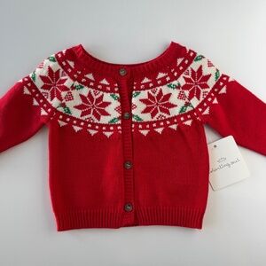 NWT Baby Girl Christmas Cardigan Snowflakes and Holly Leaves