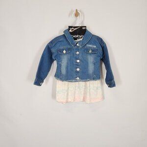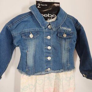 NWT Baby Girls Bebe Print Skater Dress and Denim Jacket Set Size 18M