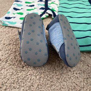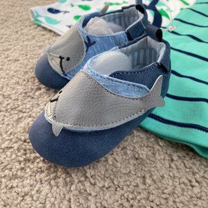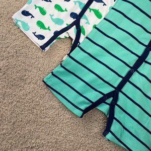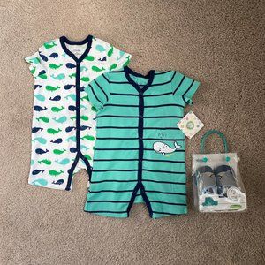 NWT Baby WHALE Bundle - 2 Snap Whale Pattern Rompers And Whale Booties