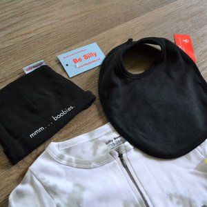 NWT Baby Zip-up Pajamas Beanie Hat and Bib Bundle