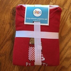 Super cute and soft pj set. Fleece striped bottoms and red top.