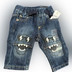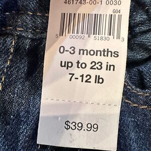 Snap button closure, collared onesie and slim fit pull on jeans. Both new with tags. 0-3 Months.
