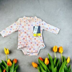 Brand new baby swimsuit with zipper and 3 button snap. Offers UV protection. Photos show detail. 0-3 Months.