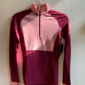 NWT Backcountry Merino Wool Pink and Burgundy Long Sleeve Zip Top XS