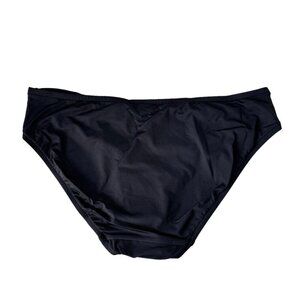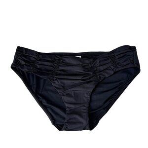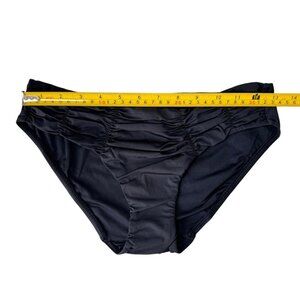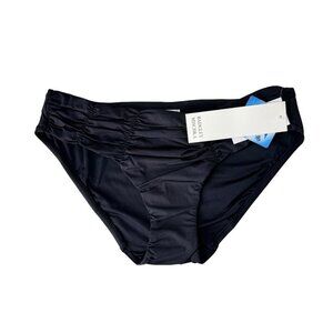NWT Badgley Mischka Bikini Bottom SZ. 8 Black Ruching Solid Low Rise Minimalist