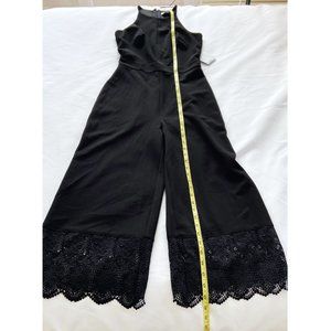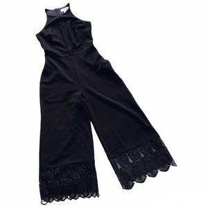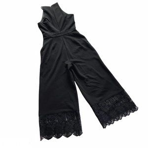 NWT Badgley Mischka Black Crop Lace Trim Cut-Out Front Playsuit Jumpsuit 0