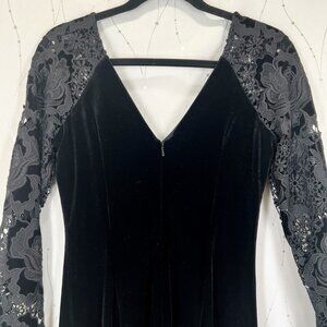 NWT Badgley Mischka Black Velvet and Lace Cocktail Dress $495