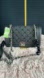 This black denim handbag is both fashionable and functional, with a distinctive look that sets it apart. The chain strap can be adjusted to wear as a shoulder bag or a crossbody, providing multiple styling options.