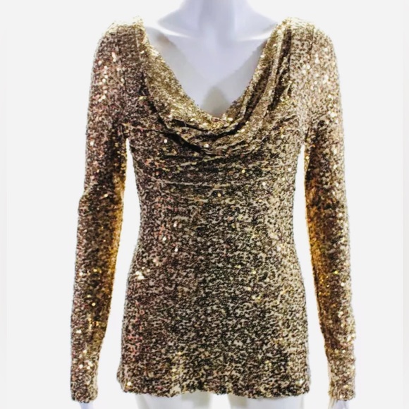 NWT Badgley Mischka | Gold Sequined Party Mini Dress or Tunic Top | Size Small