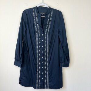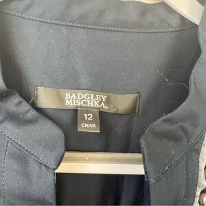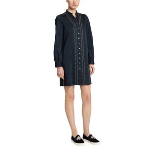 NWT Badgley Mischka Navy Button Front Shirt Dress With Pearls