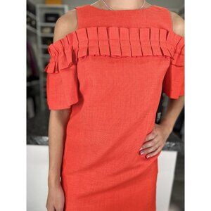NWT Badgley Mischka Orange Ruffle Shift Dress $440